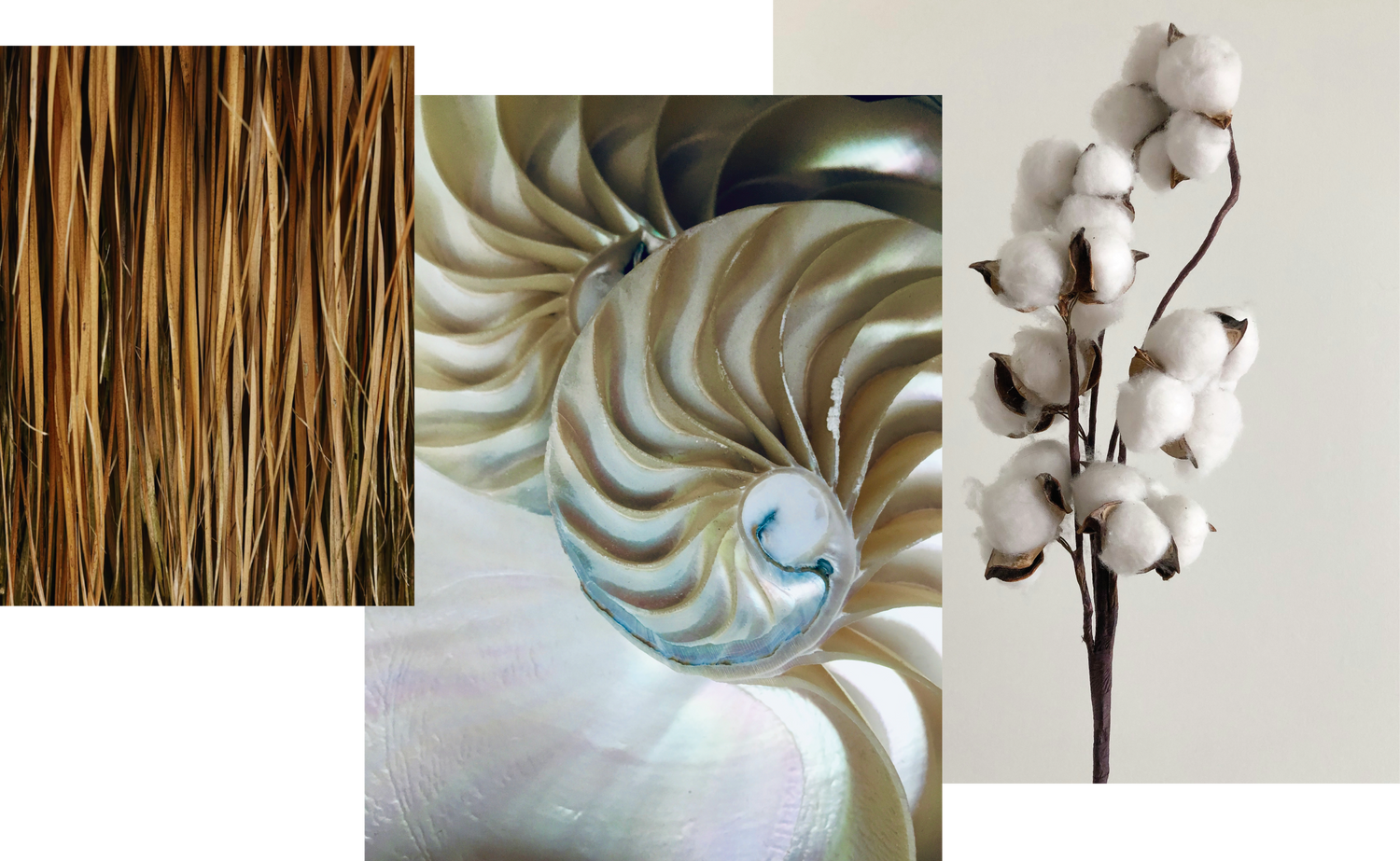 Nos encanta el mar y la vida a pies descalzos en la playa. Nuestros productos están inspirados en ese entorno y muchos de ellos están hechos a partir de desechos orgánicos recolectados del mar, como conchas, perlas y corales.