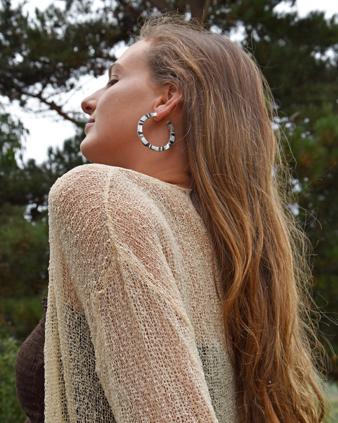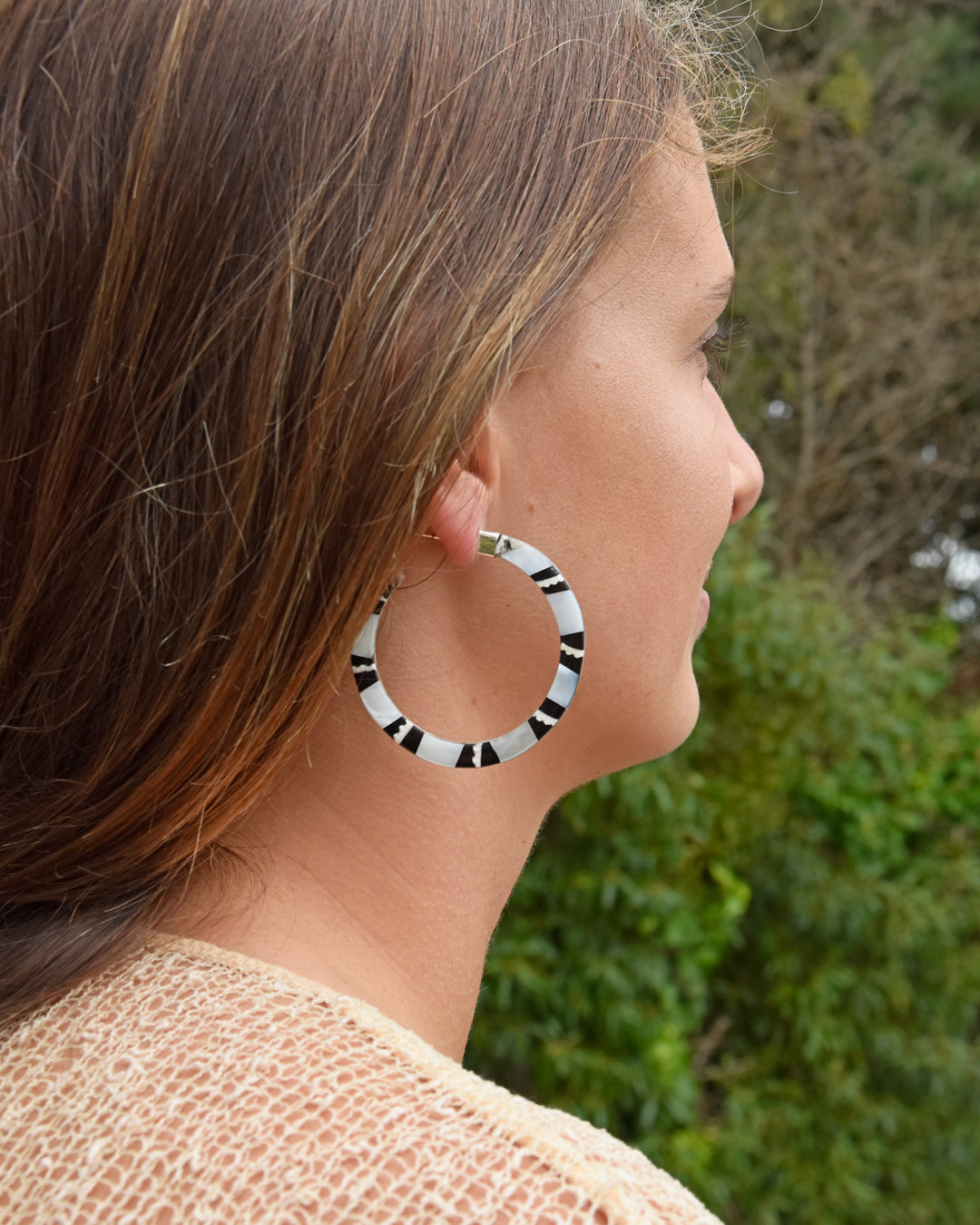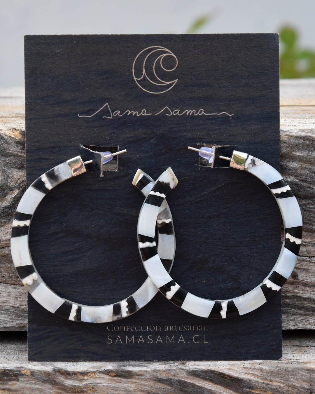 Preciosas y originales argollas de nácar natural y resina trabajado a mano con Plata 925. ¡¡¡Increíble como iluminan!!! Tonos blancos y negros que combinan con todo.