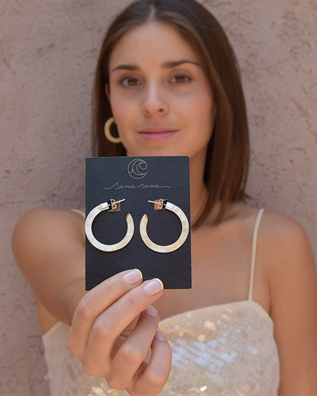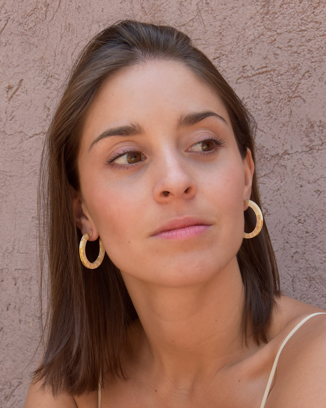 Preciosas y originales argollas de nácar natural trabajado a mano con Plata 925. ¡¡¡Increíble como iluminan!!! Tonos dorados y blancos
