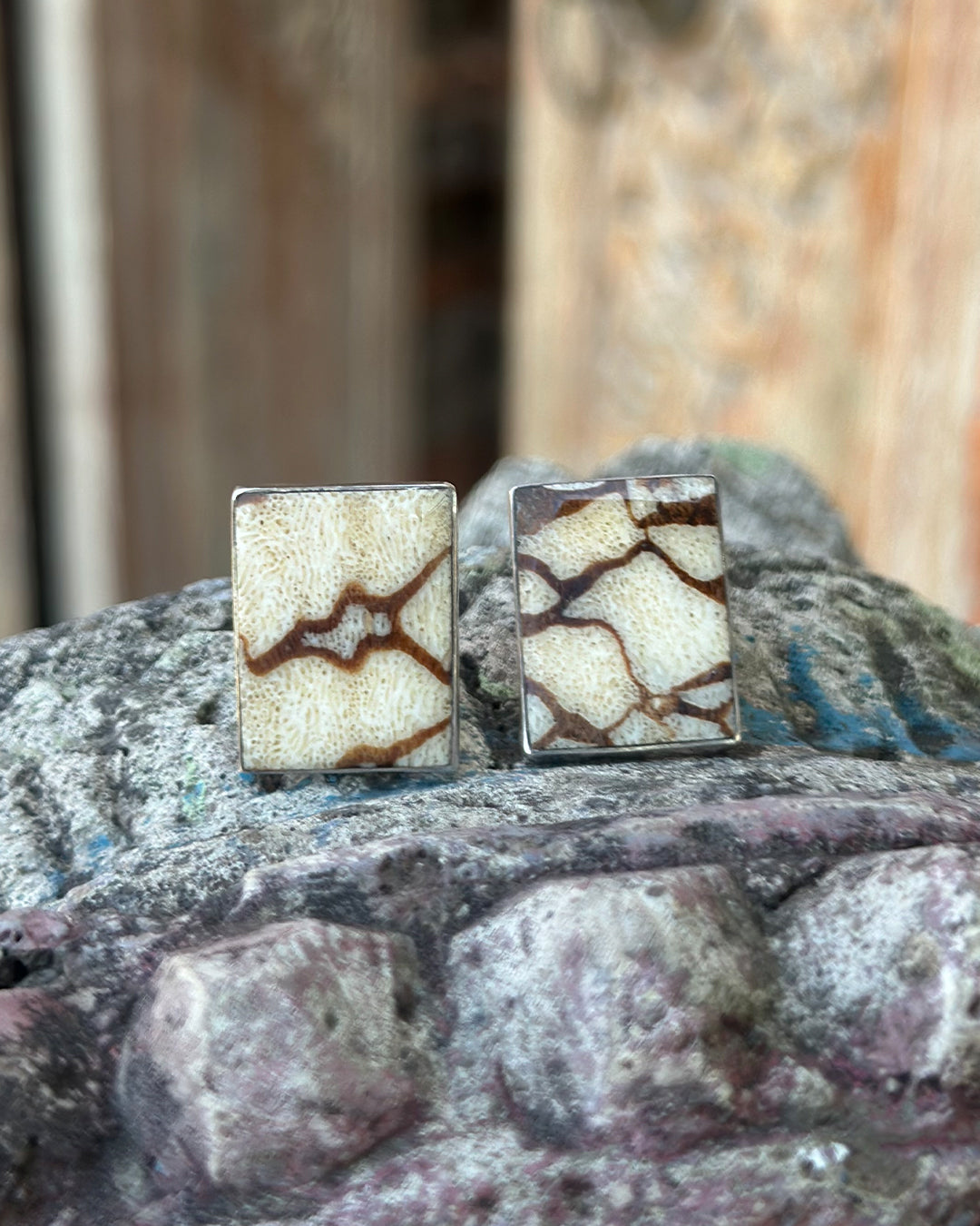 Nuestros auténticos aros de Plata 925 con piedra coral blanca le dan un toque elegante y atemporal a tu tenida.