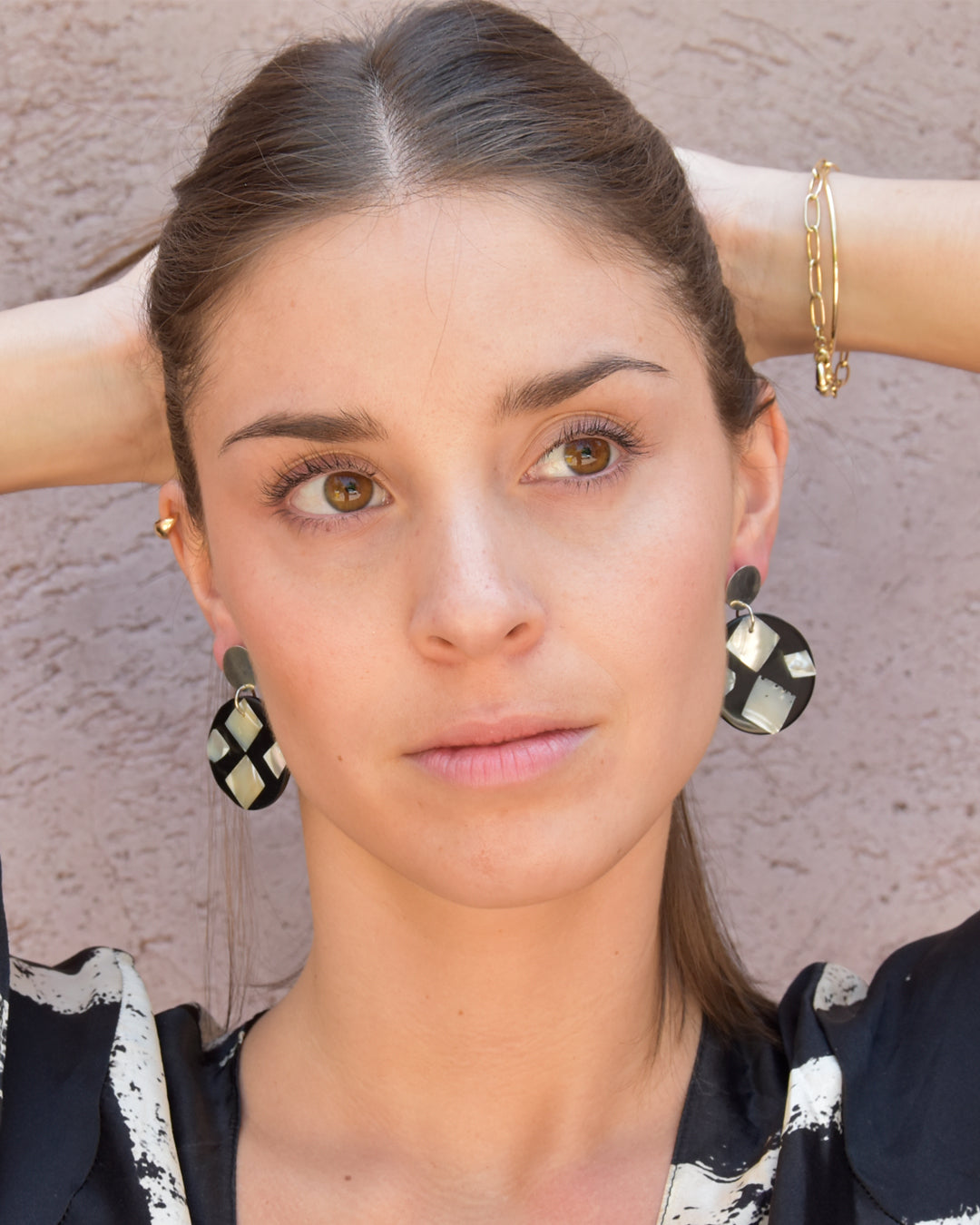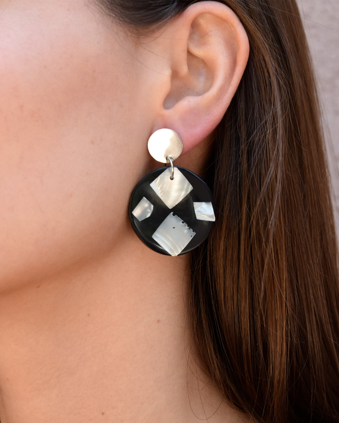 Nuestros clásicos aros hechos a mano, elaborados con conchas y resina, sobre una base de 100% plata 925. Aportan un toque luminoso y único a tu look.