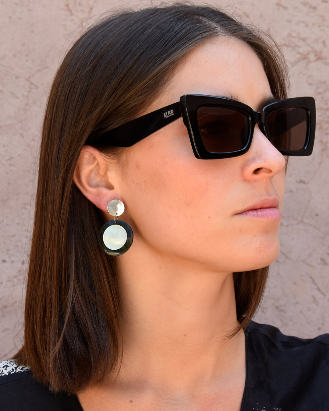 Nuestros clásicos aros hechos a mano, elaborados con conchas y resina, sobre una base de 100% plata 925. Aportan un toque luminoso y único a tu look.