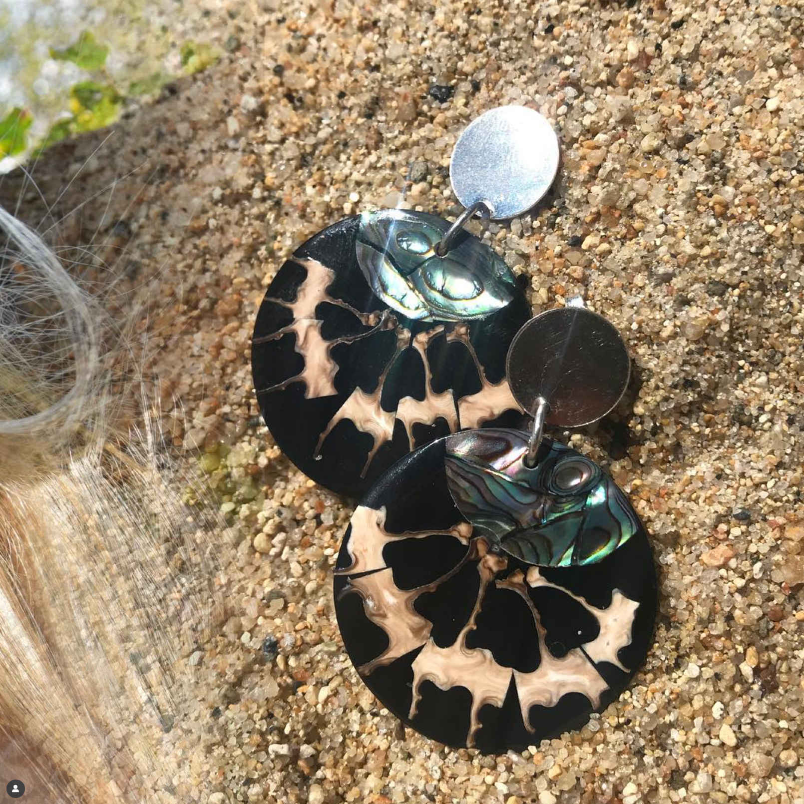 Nuestros clásicos aros hechos a mano, elaborados con conchas y resina, sobre una base de 100% plata 925. Aportan un toque luminoso y único a tu look.