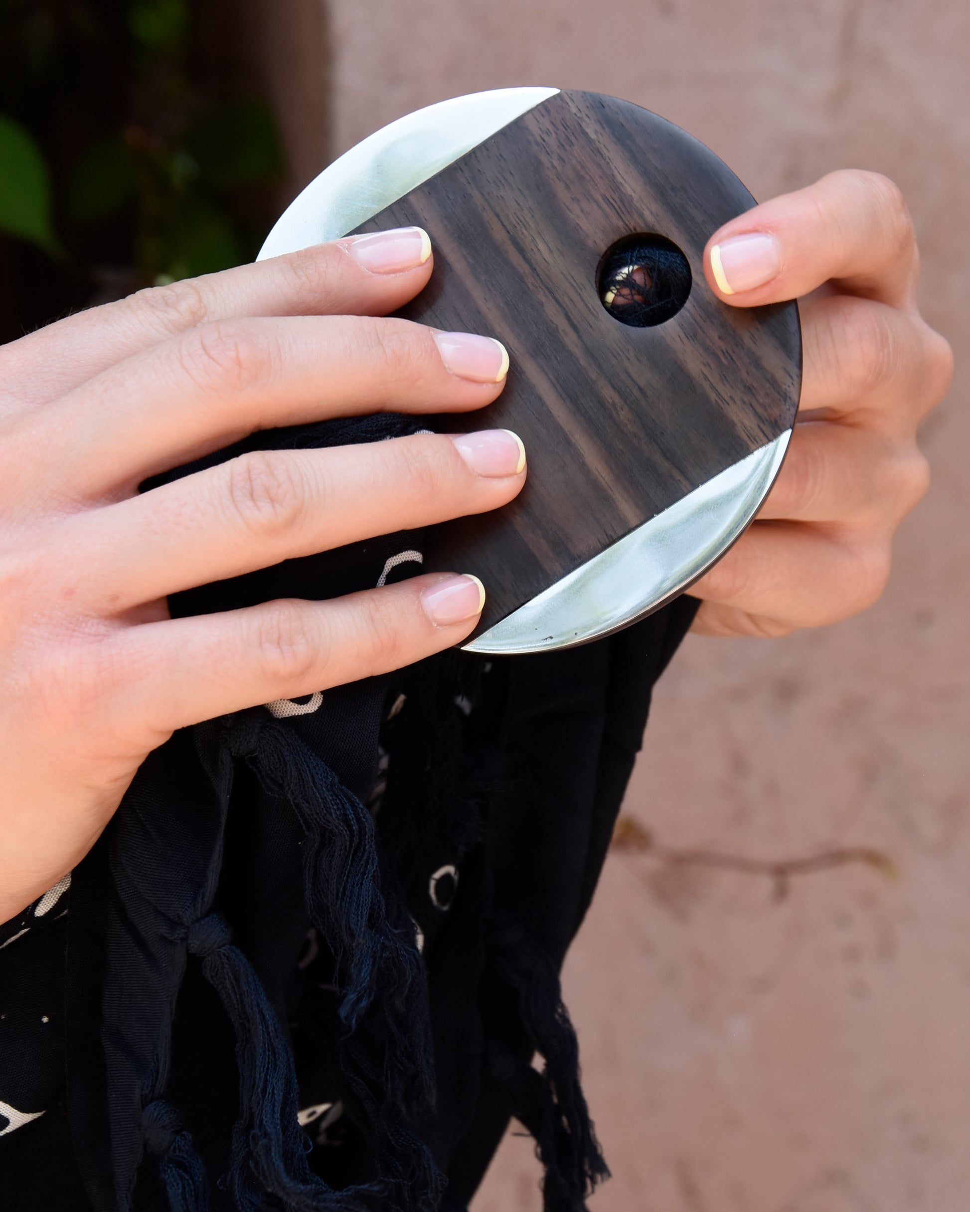 Confeccionado de madera y metal, este accesorio no solo asegura la tela de forma práctica, sino que también aporta un aire de autenticidad y estilo único a tu look.